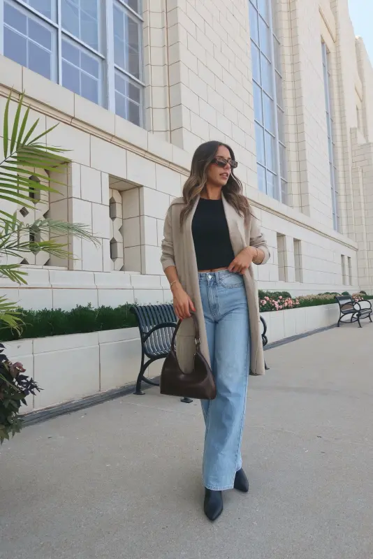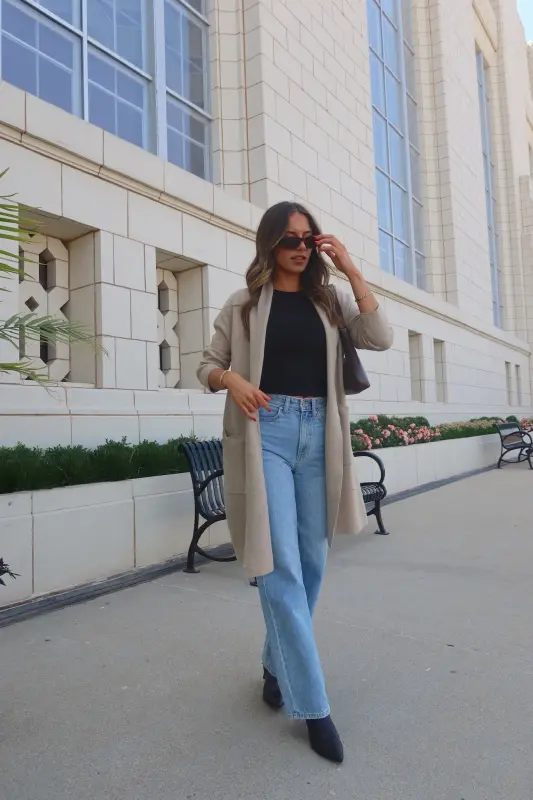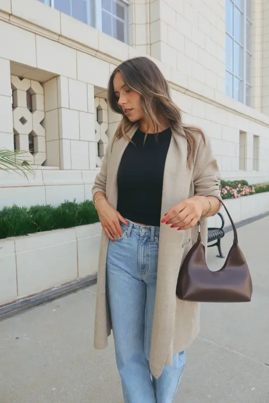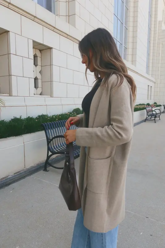 Our Rhea Oatmeal Cardigan is a full length elongated cardigan with large pockets. This cardigan features a shawl collared neckline, with an oversized fit. This cardigan is made of a textured knit material that is thick, chic, and perfect for the cooler seasons. This knit long sleeve cardigan has stretch, which creates a flexible fit.